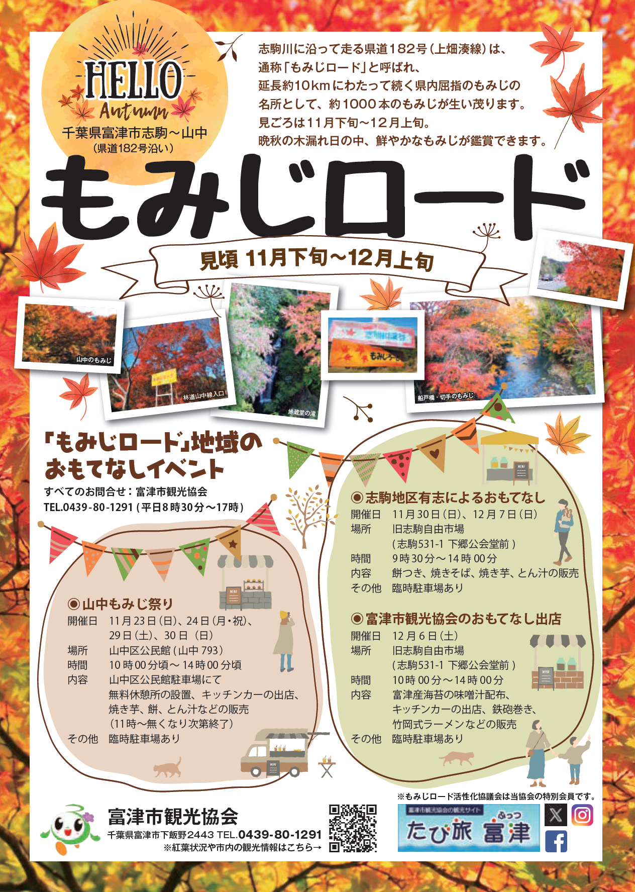 志駒川に沿って延長約10kmに続く県道182号(上畑湊線)は、通称「もみじロード」と呼ばれ、県内屈指のもみじの名所として約1,000本のもみじが生い茂ります。