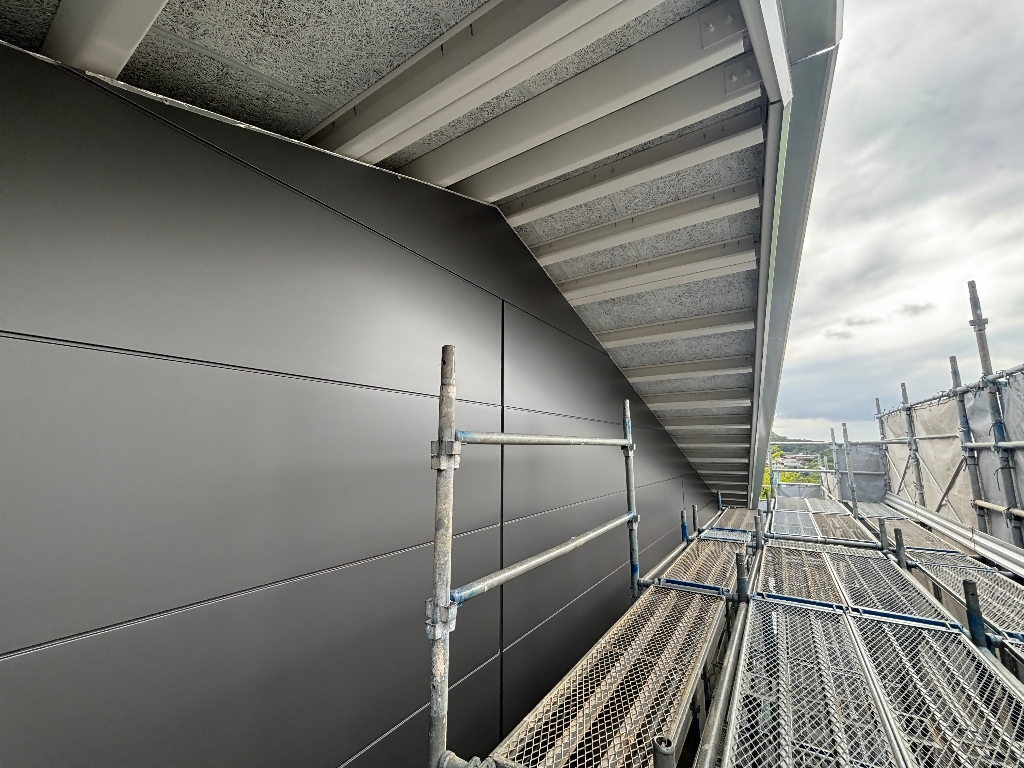 屋根(SGL鋼板)と外壁塗装を施工中です。