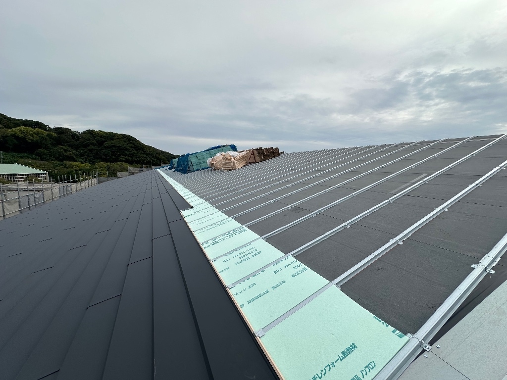 に貼付け、SGL鋼板(画像左側)を葺きます。