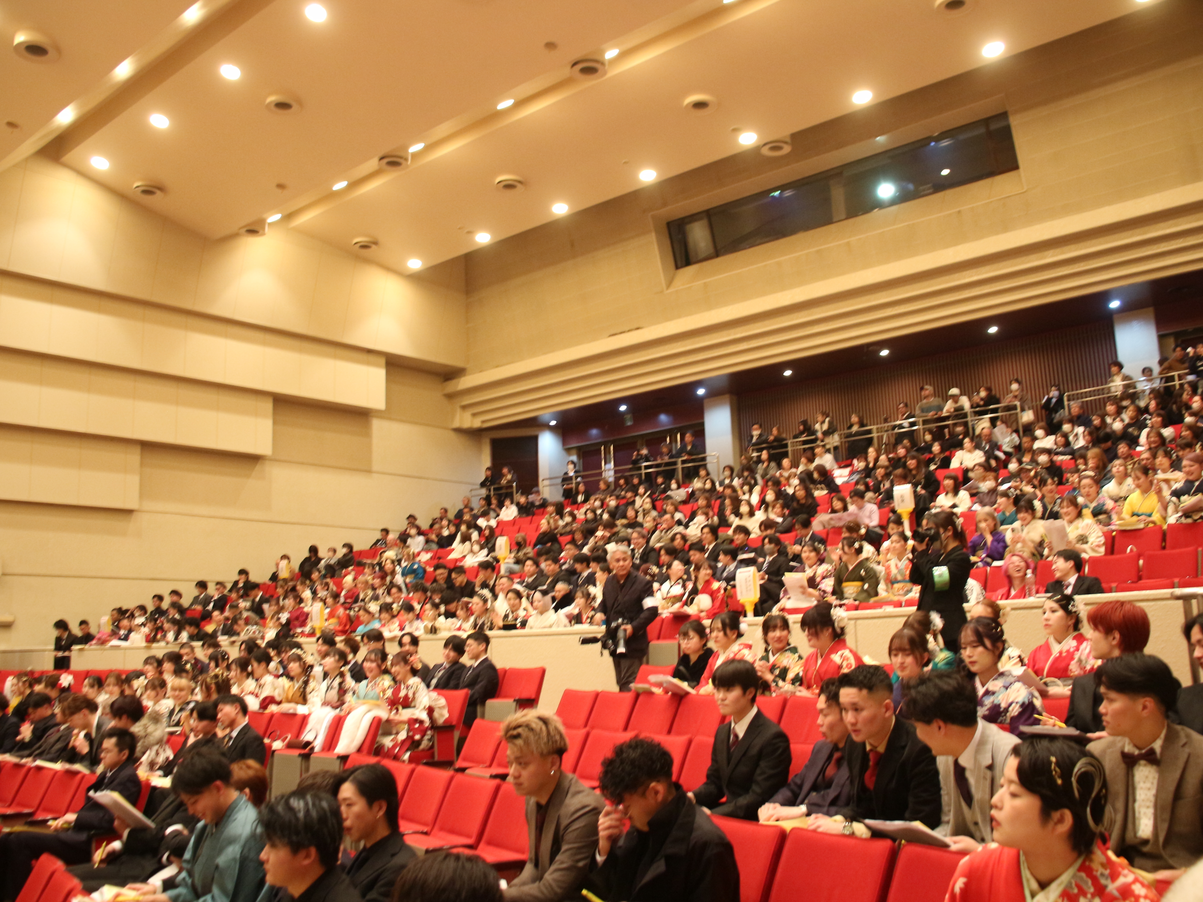 会場内外では、色鮮やかな振袖やスーツ姿の二十歳の皆さんが、旧友との再会を喜び、談笑したり写真を撮り合ったりする姿が見られました。