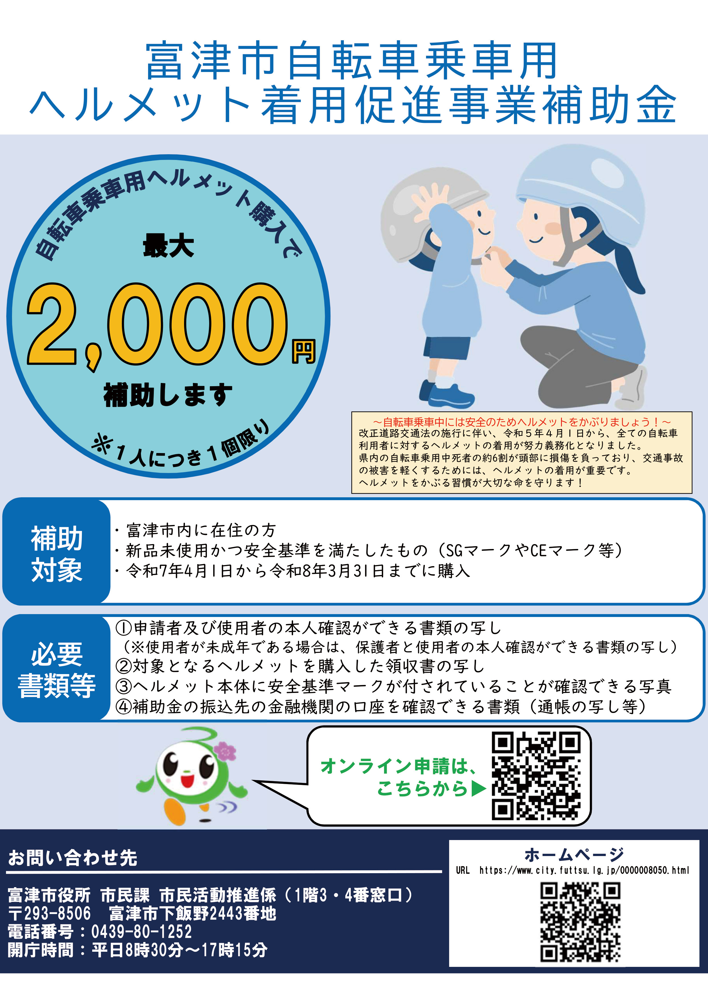 富津市では自転車用ヘルメットの購入補助を実施しています。