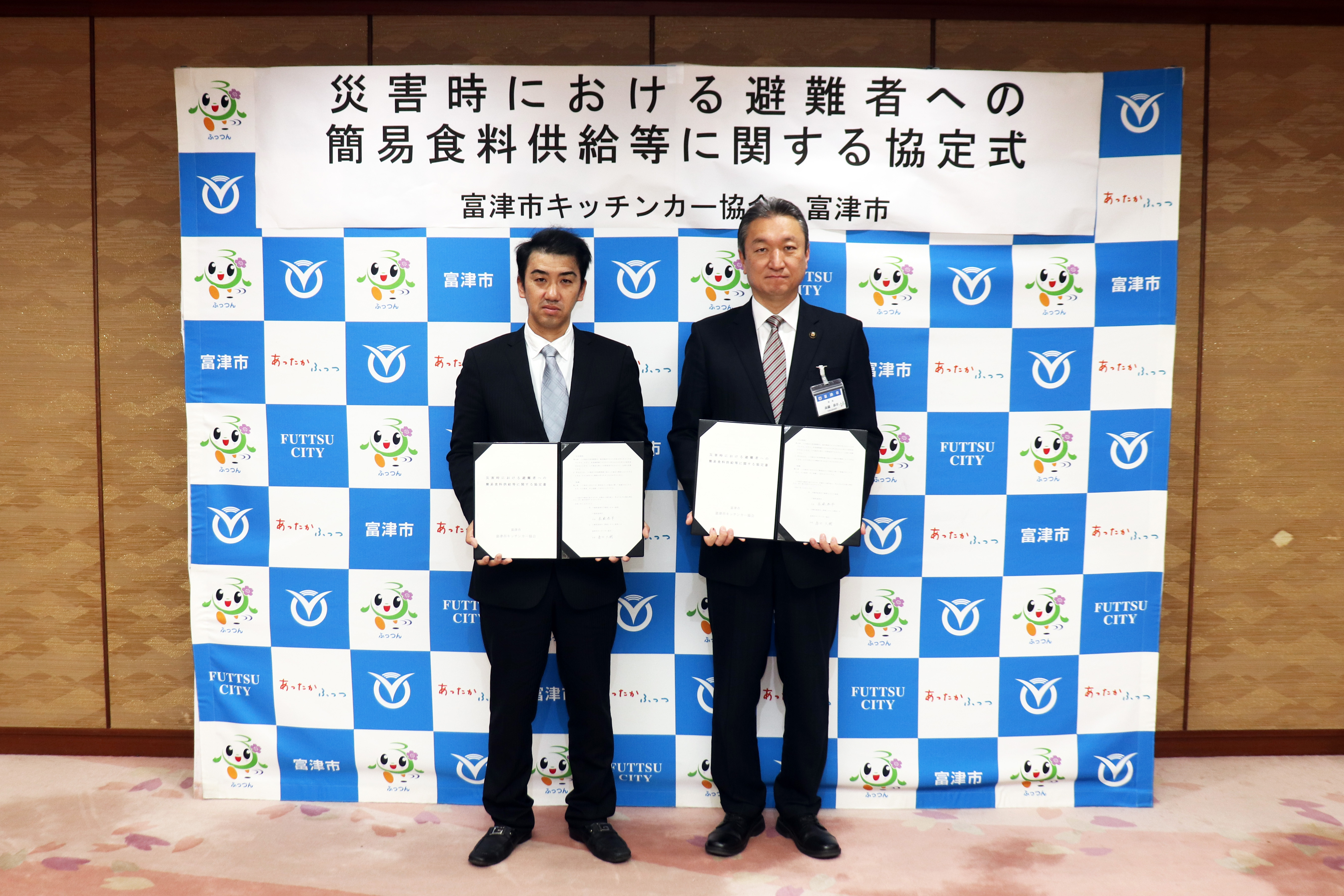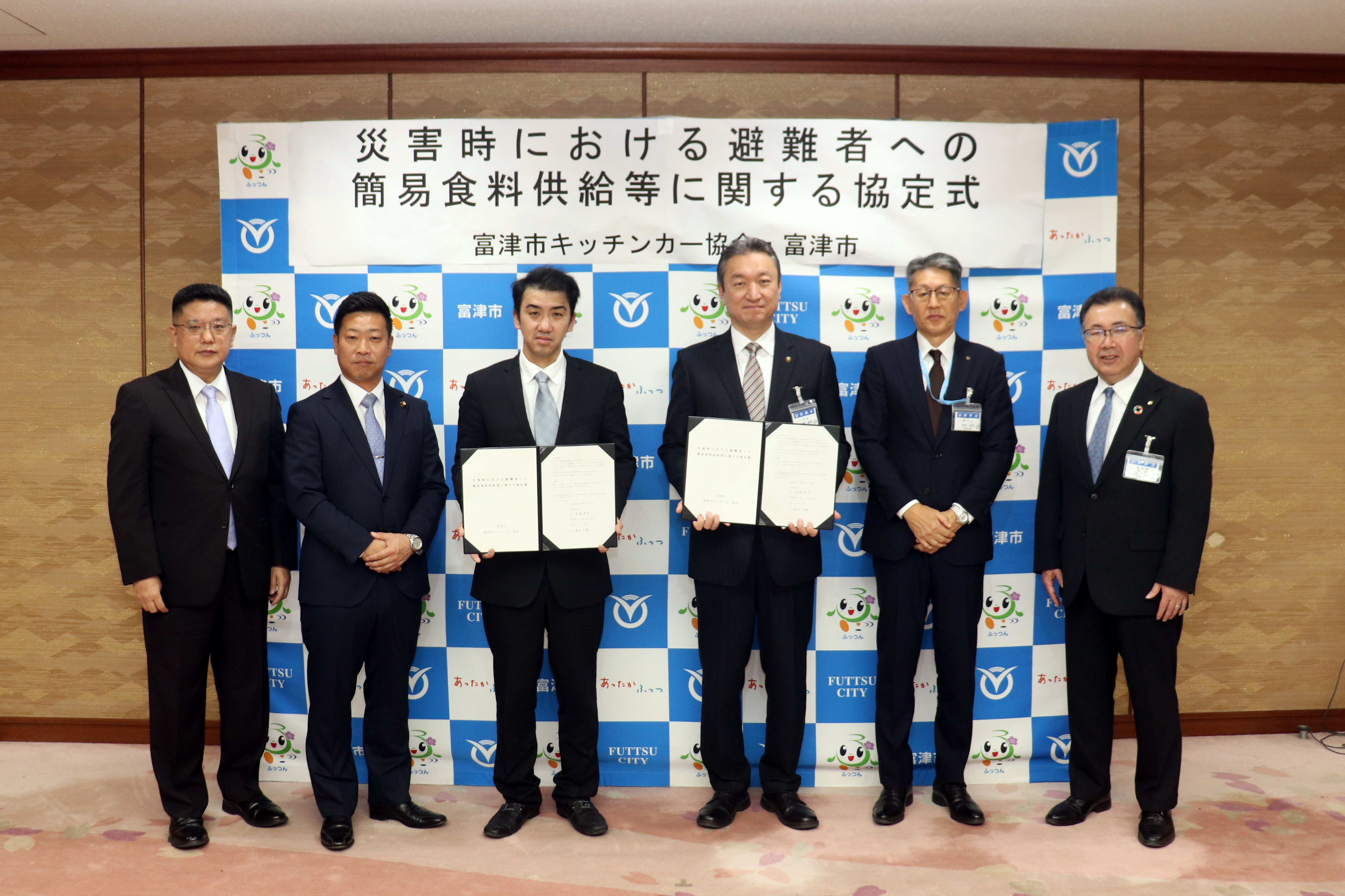富津市内に災害が発生した場合に、キッチンカーによる簡易食料供給等に関し、当該災害により避難した市民及び帰宅困難者に対する支援が円滑に実施されることを目的とした協定を締結しました。